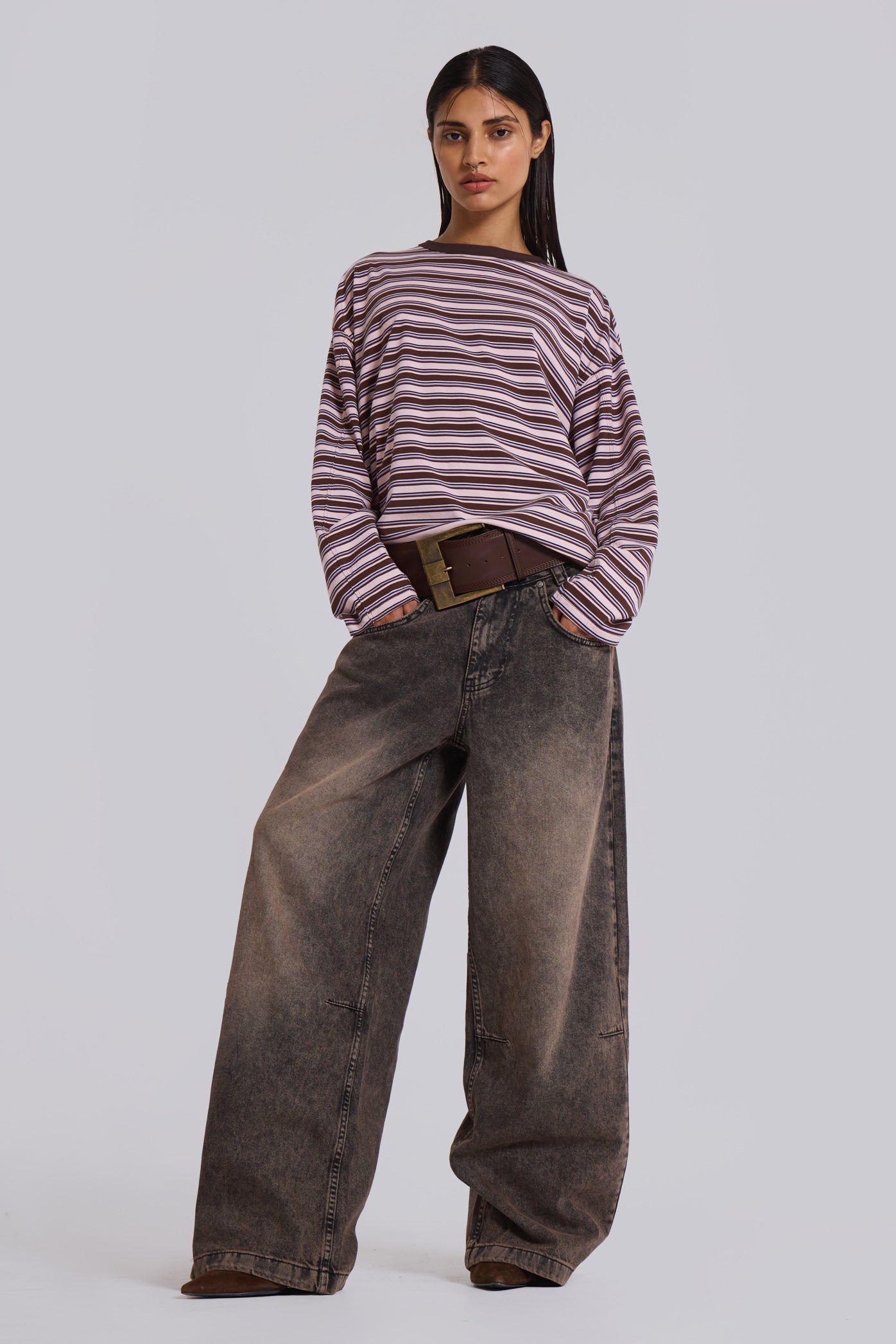 Model is 5 ft 9. size 8 and wears a size W30 for an oversized fit.