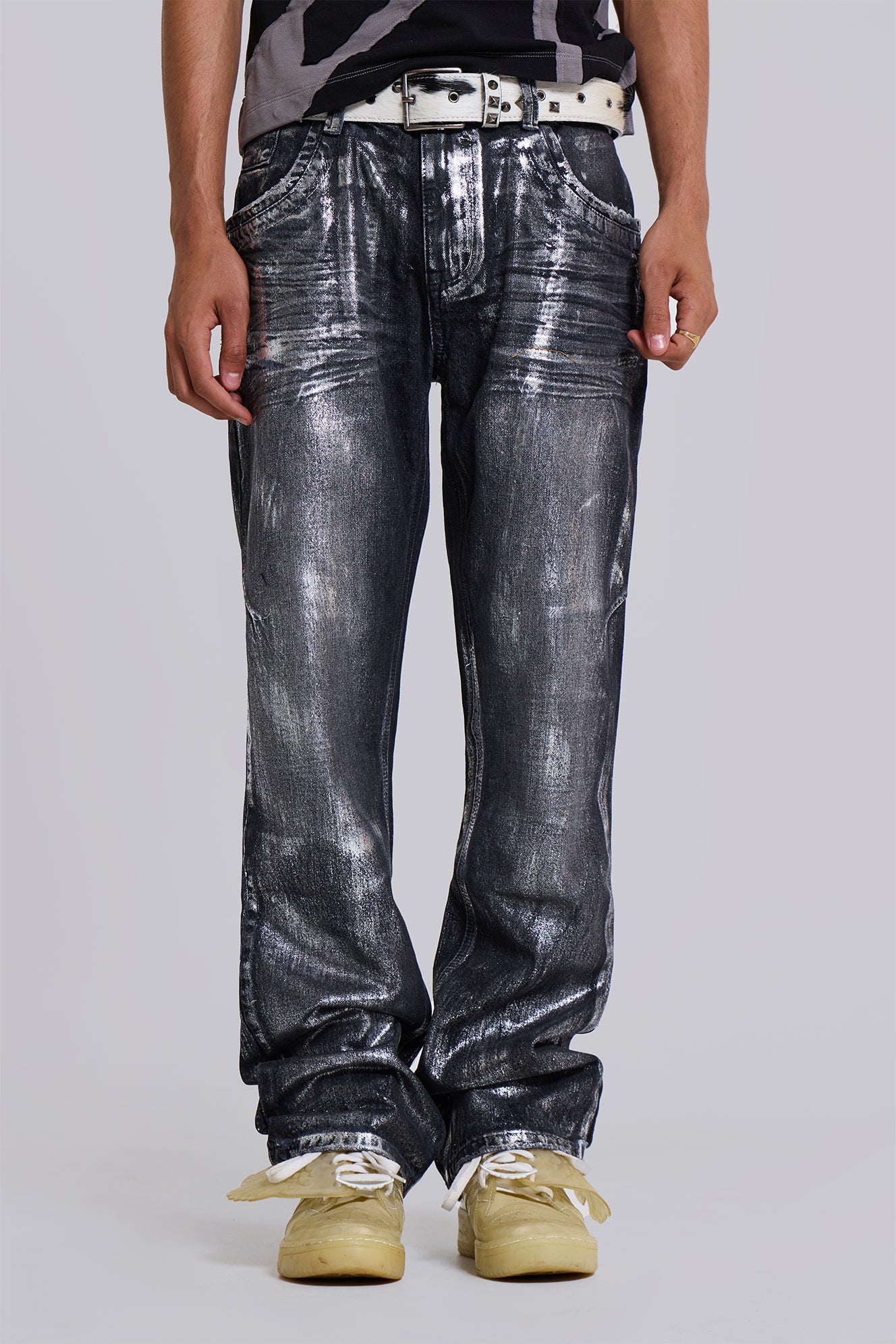 Classic slim straight jeans in a mid-rise fit. crafted from a mid-weight non-stretch denim. The Gunmetal Reed Jeans feature five pocket styling with a washed black base colour. complete with a foil finish.