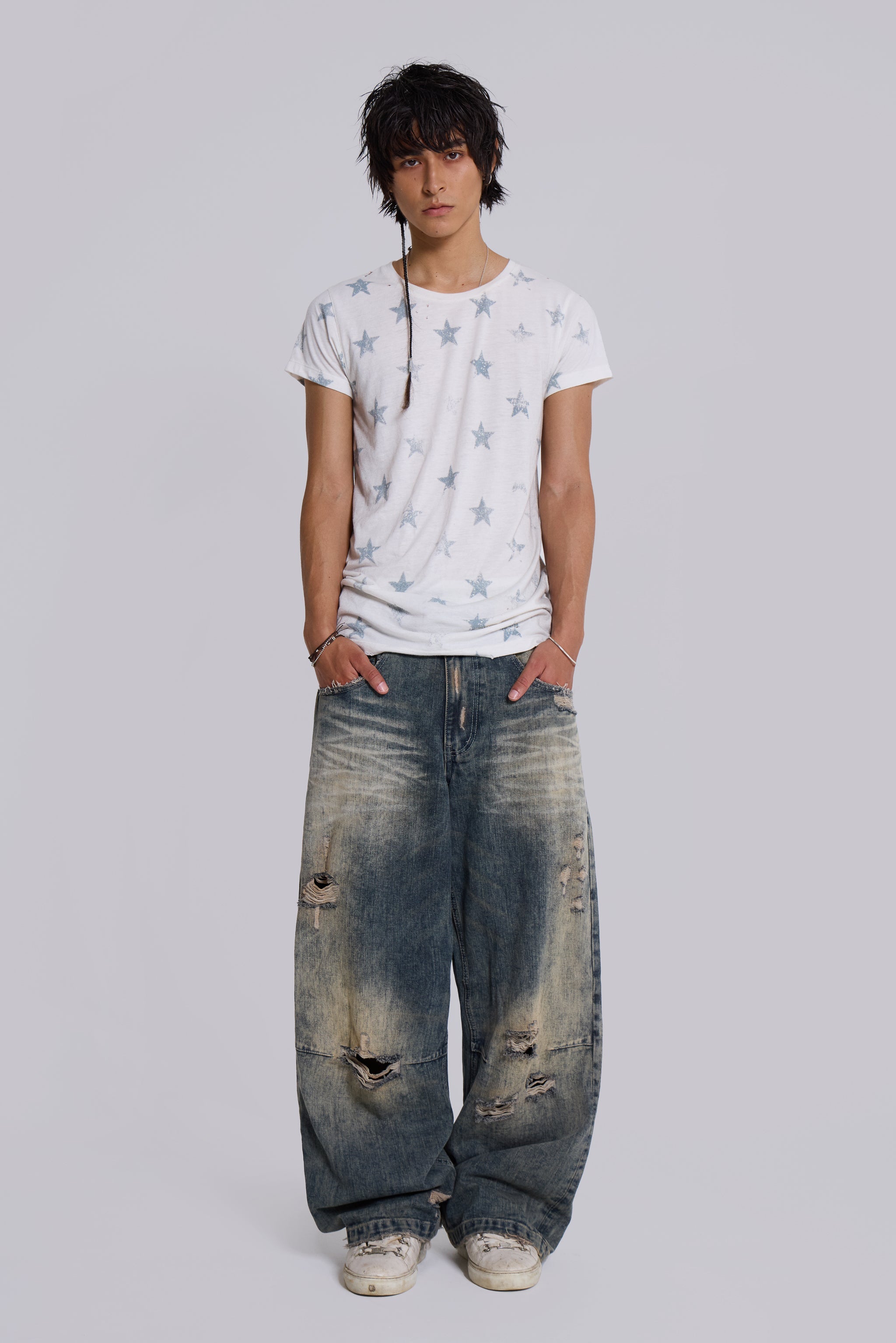 • All over distressed star print