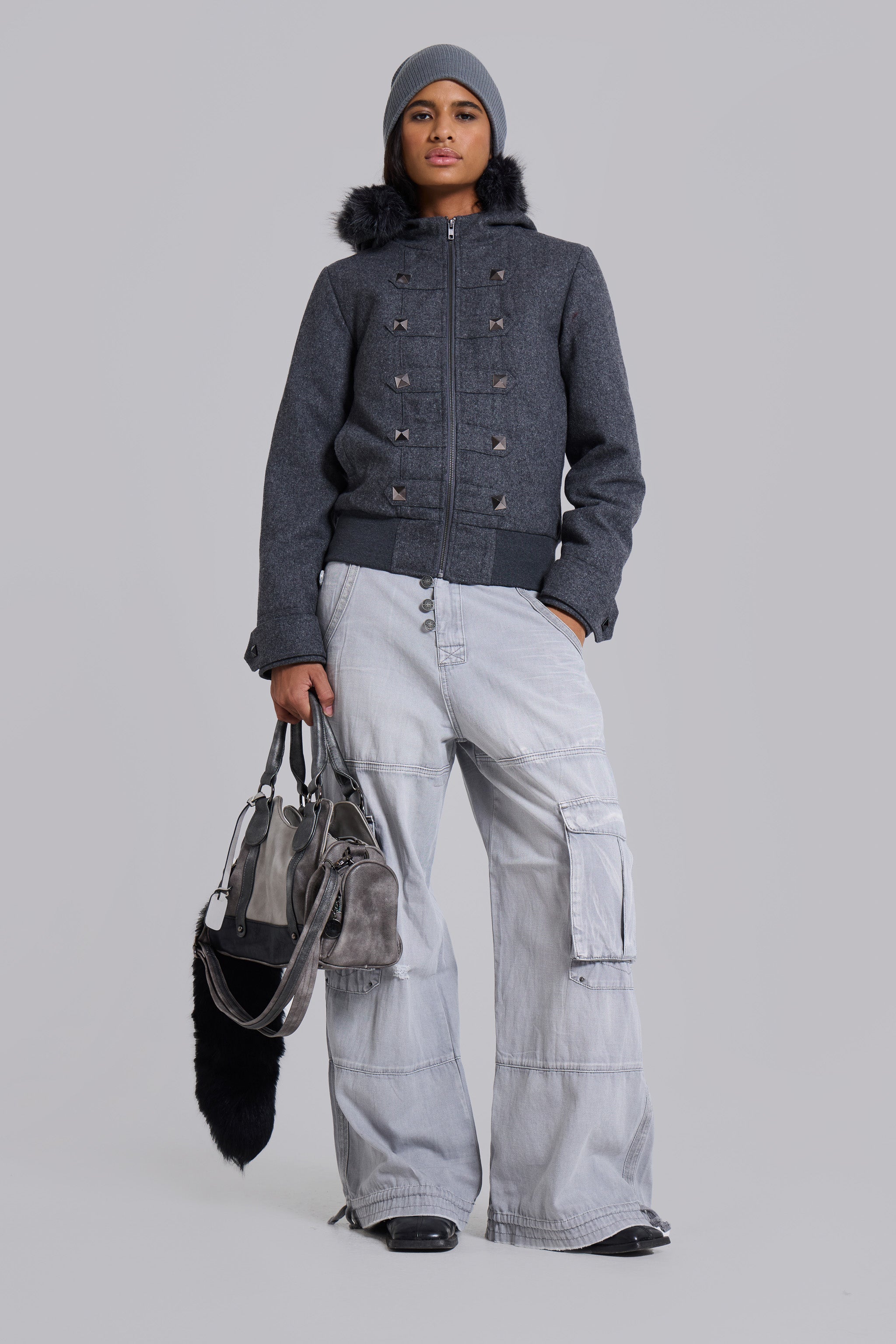 • Removable fur trim hood