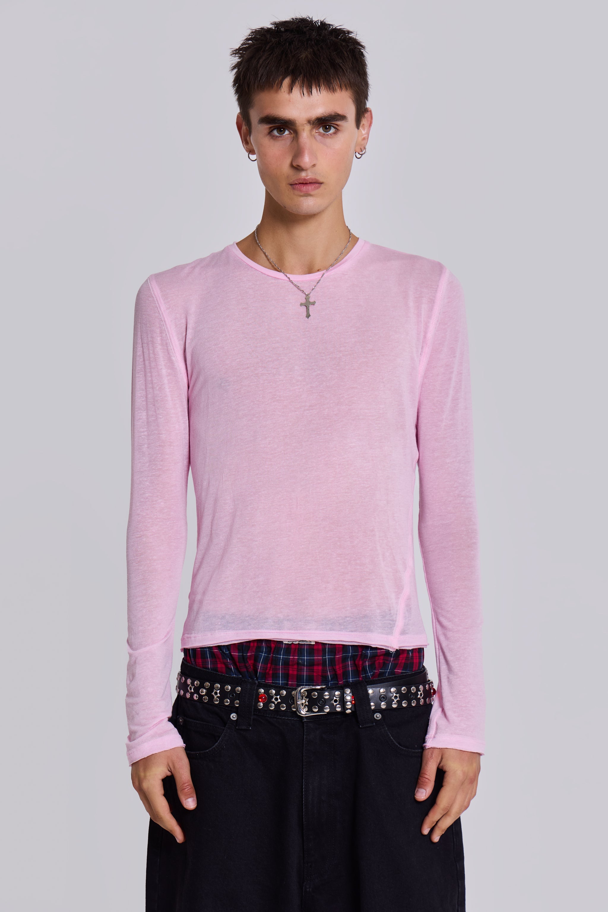 Crafted from a lightweight sheer fabric. the Pink Mist Long Sleeve provides the perfect layering piece. This top has a slightly cropped body with a twisted side seam detail.