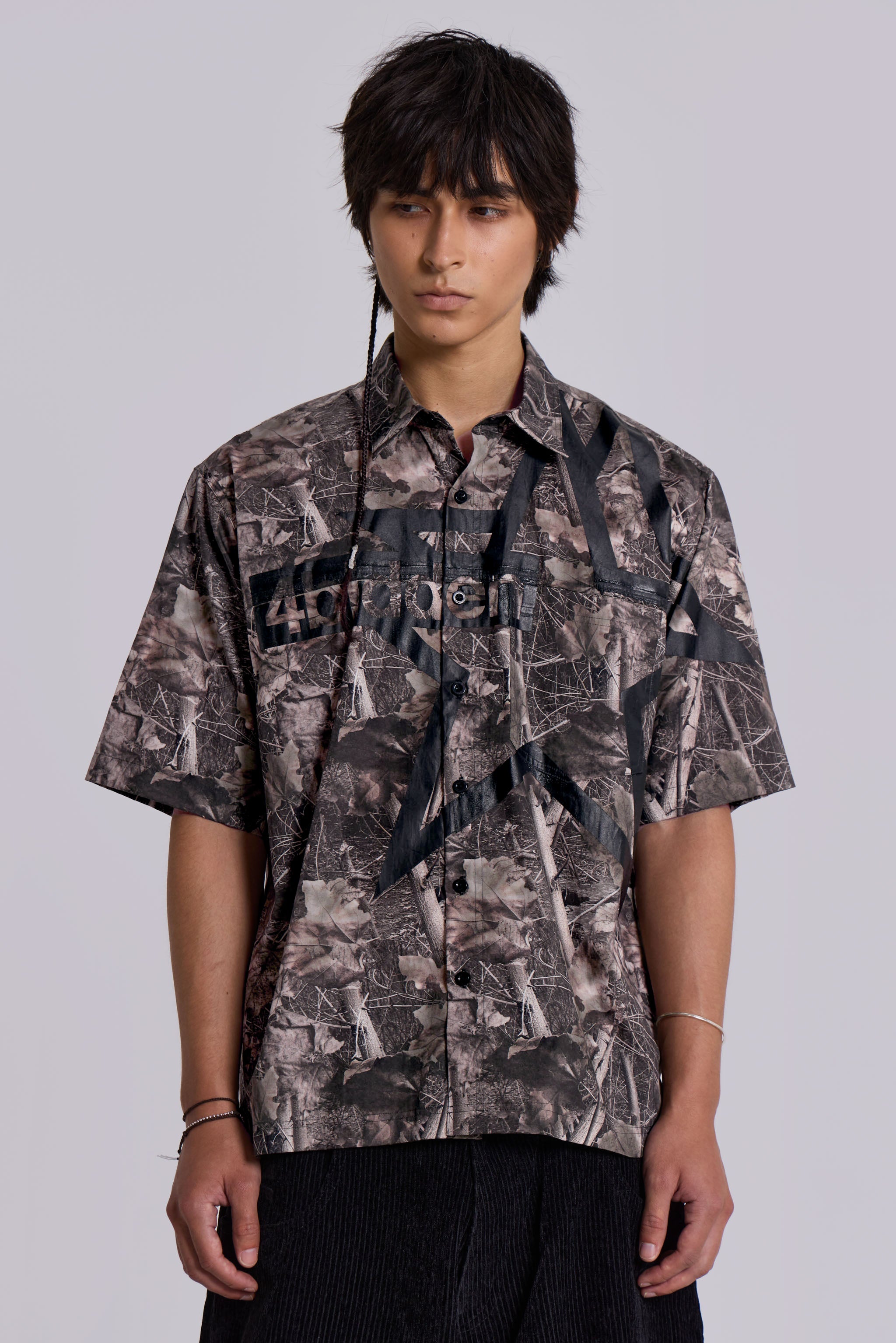 • All over woodland camo print