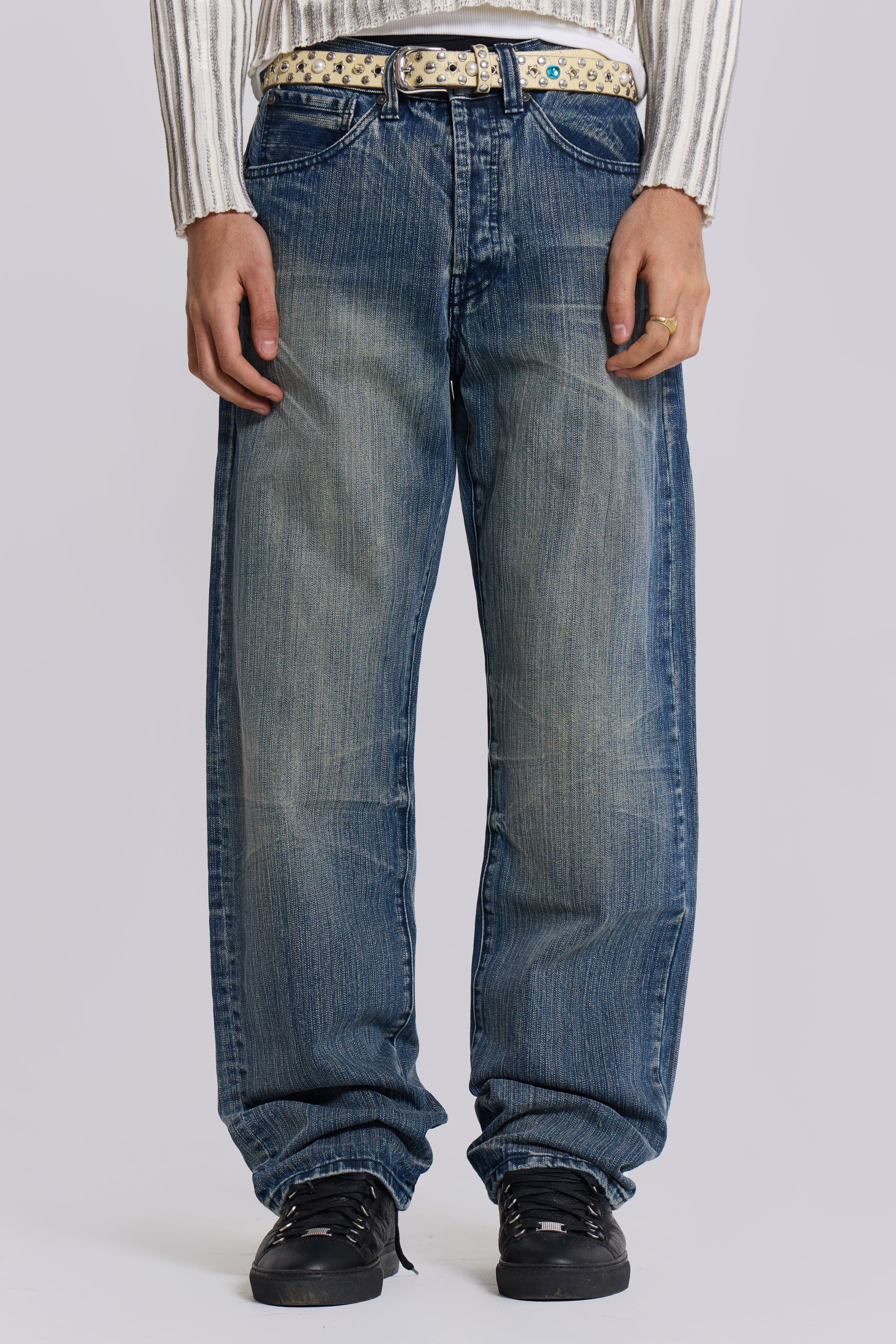 Crafted from a mid-weight slub denim fabric with a relaxed straight fit. The Light Wash Scott Jeans are crafted in a vintage light wash and feature x5 pocket styling and a buckled cinch detail on the back.
