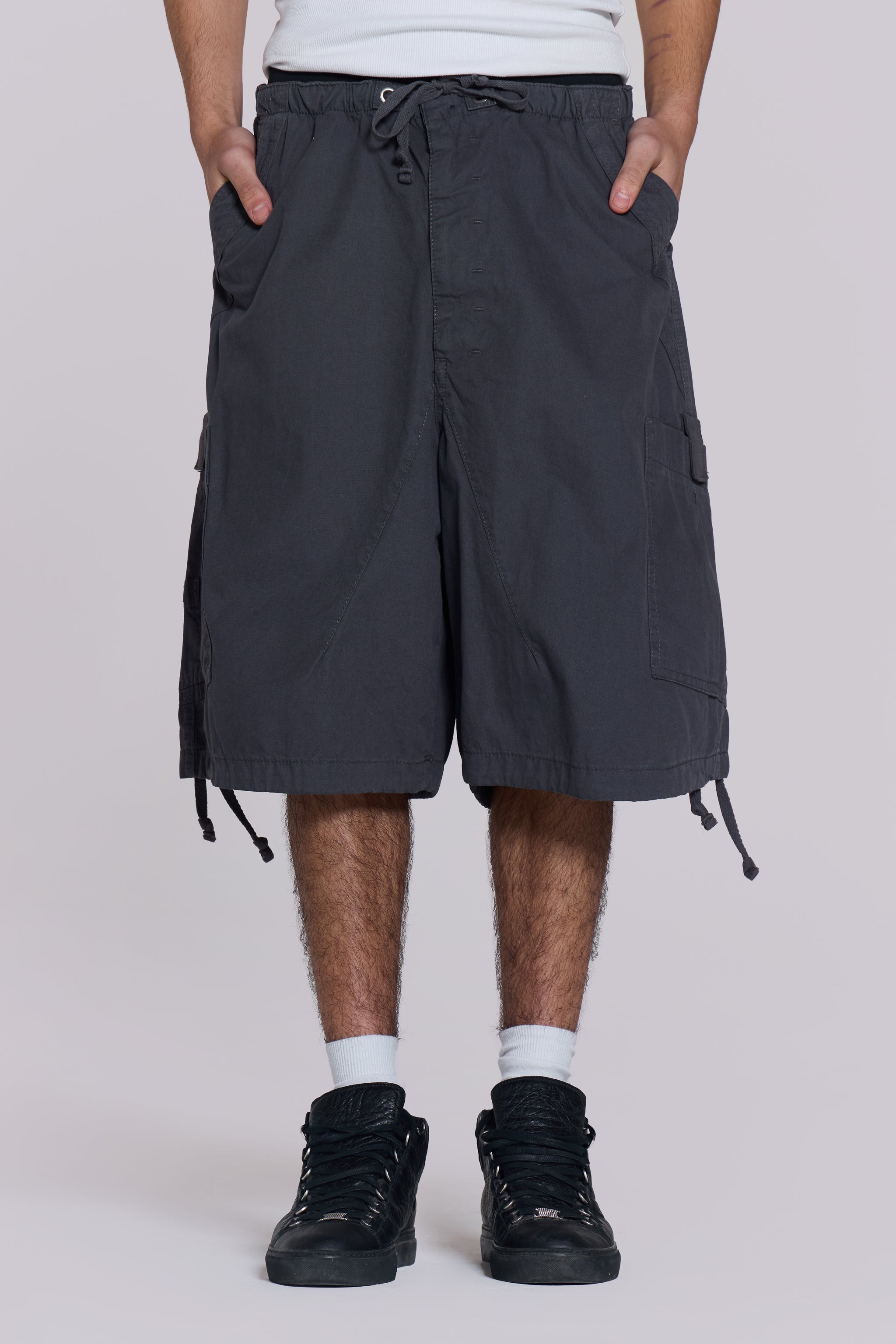 Discover the unparalleled comfort and style of the Vintage Grey Parachute Cargo Shorts. These shorts feature an oversized fit and six-pocket styling. accompanied by an elasticated waistband and adjustable cotton drawcord for added flexibility.